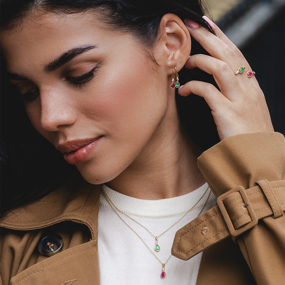 Lassen Sie Ihre innere Herzogin mit Edelsteinen erstrahlen, die historisch mit dem Königshaus in Verbindung gebracht werden. Saphire , Smaragde und Rubine setzen kräftige Farbtupfer und passen sowohl zu monochromen als auch zu floralen Ensembles.