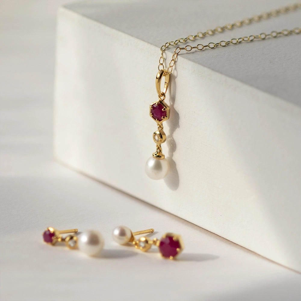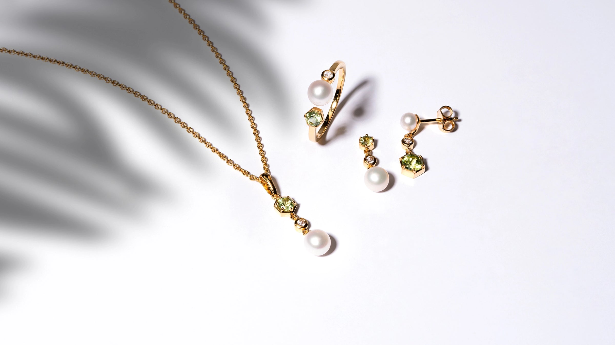Modernes Perlen-, Amethyst- und Topas-Anhänger- und Ring-Set aus rosévergoldetem Silber