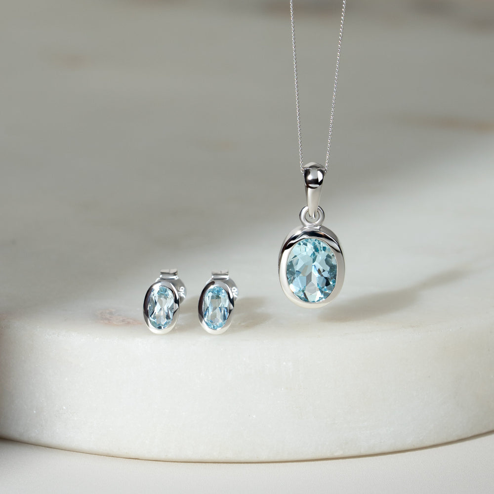 Treten Sie ein in die Welt der Edelsteine und verwöhnen Sie sich mit einem wunderschönen Paar blauer Aquamarin-Ohrringe inklusiveOhrstecker , Ohrhänger und Huggies!