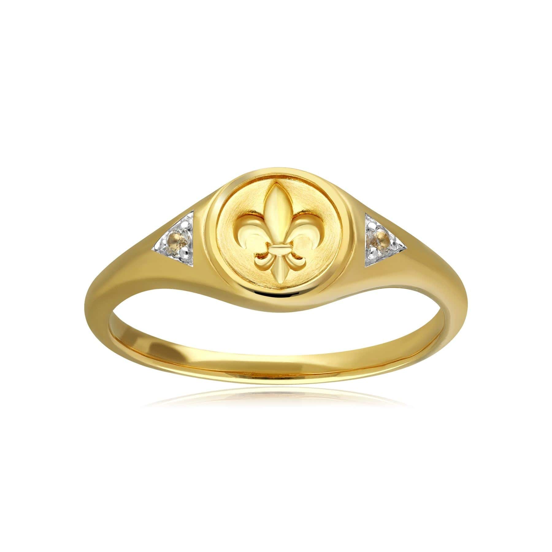 133R9473019 ECFEW™ White Topaz Fleur De Lis Signet Ring In 9ct Yellow Gold 1