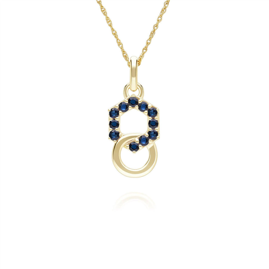 Geometric Hexagon and Round Linked with Prong set Sapphire Pendant in 9ct Yellow Gold