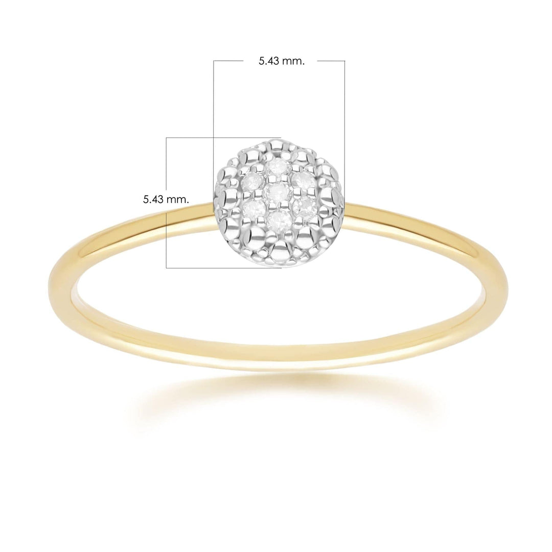 Perfekt für den Alltag. Dieser elegante Ring aus 9 Karat Gelbgold ist mit einer Reihe zierlicher Diamanten in einer runden Pave-Fassung entlang eines eleganten Bandes verziert.