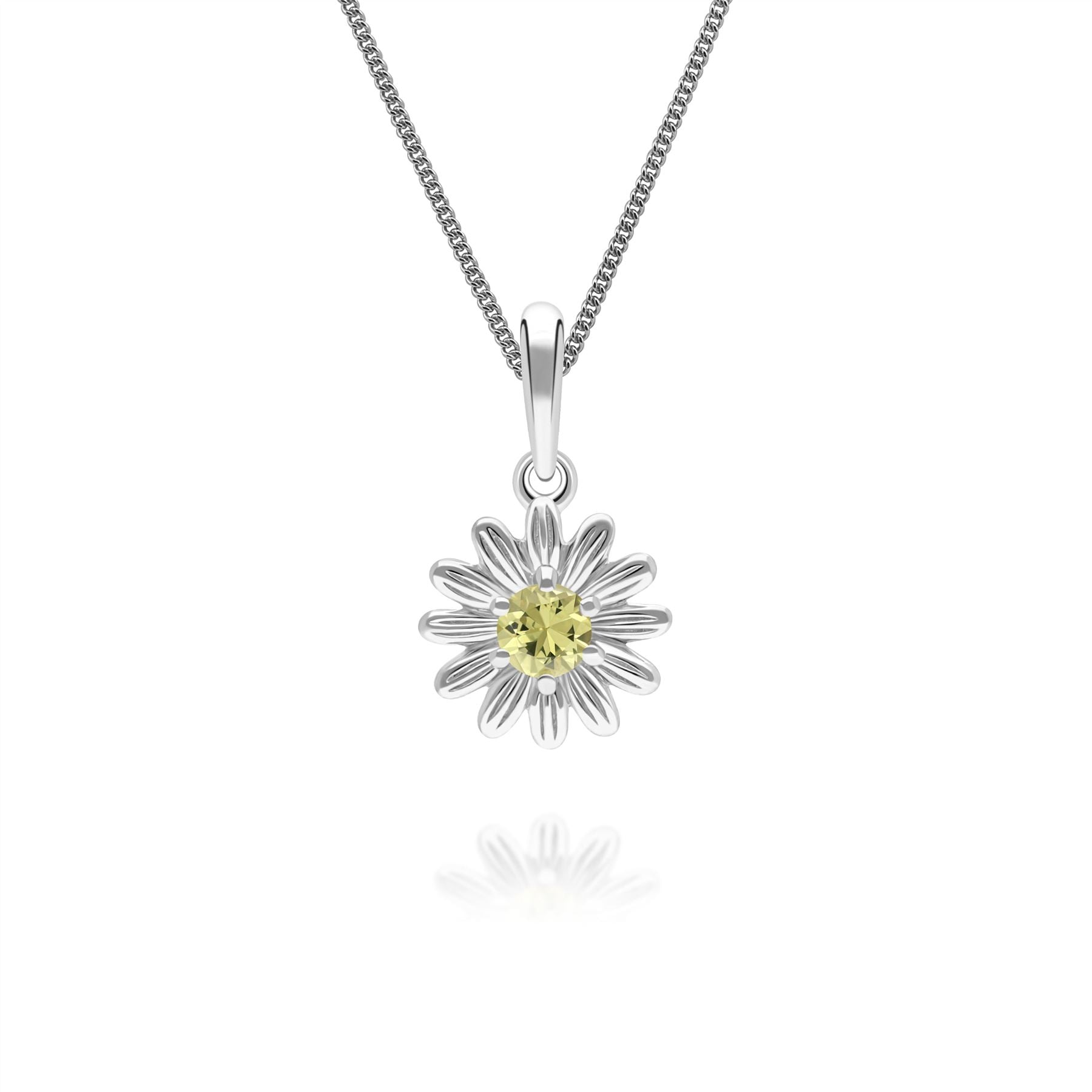 Gardenia Daisy Yellow Sapphire Floral Halo Flower Pendant Necklace in Solid 9ct White Gold