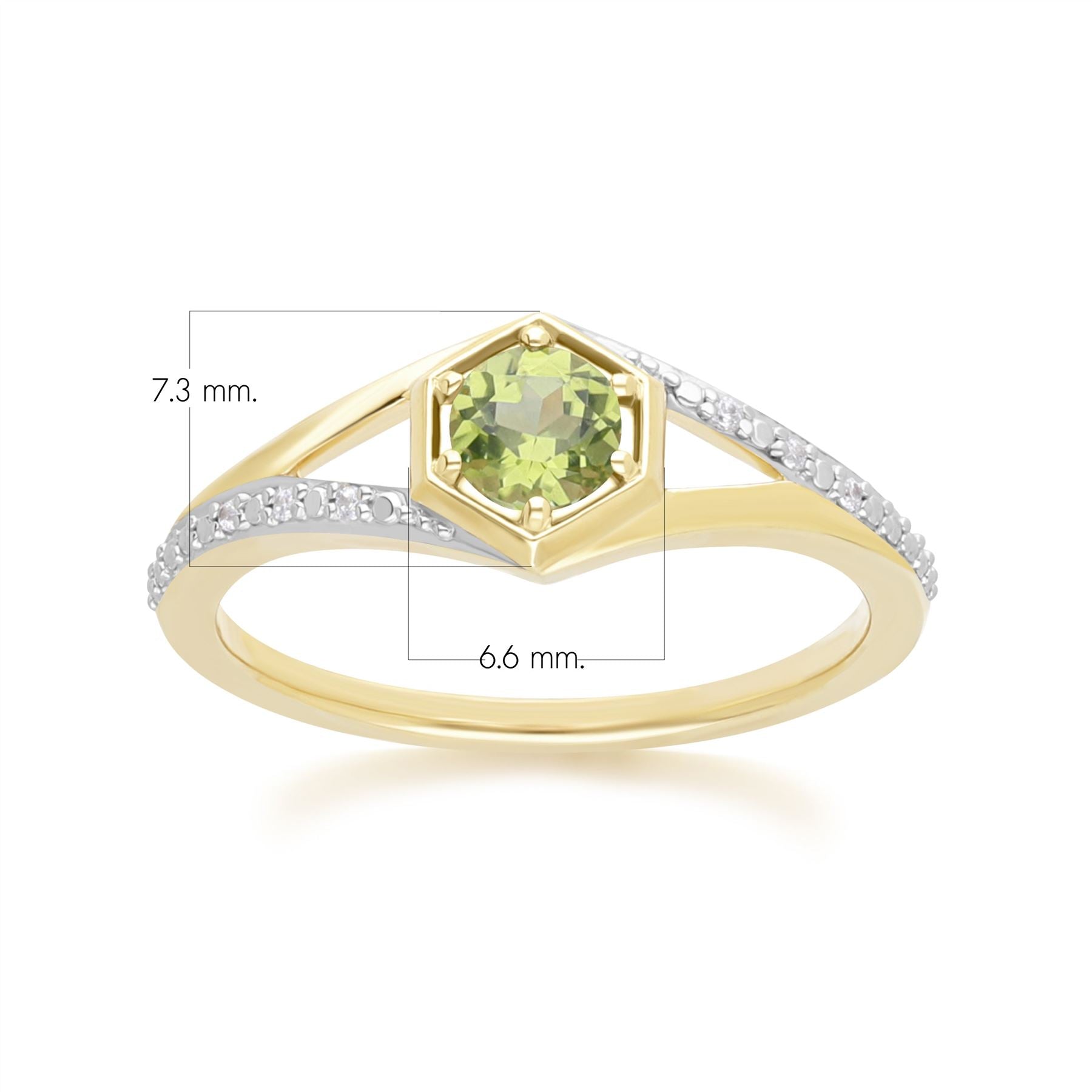 Geometric Hexagon with Prong set Round Peridot and Diamond Ring in 9ct Yellow Gold
