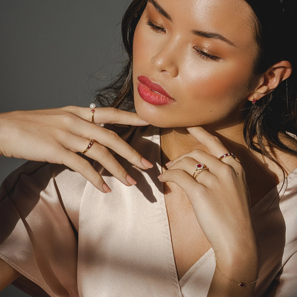 Rote Rubine gelten seit langem als romantischer Edelstein, der Liebe und Leidenschaft in all ihren Formen hervorruft. Der Sanskrit-Name für Rubin bedeutet ungefähr „König der Edelsteine“.