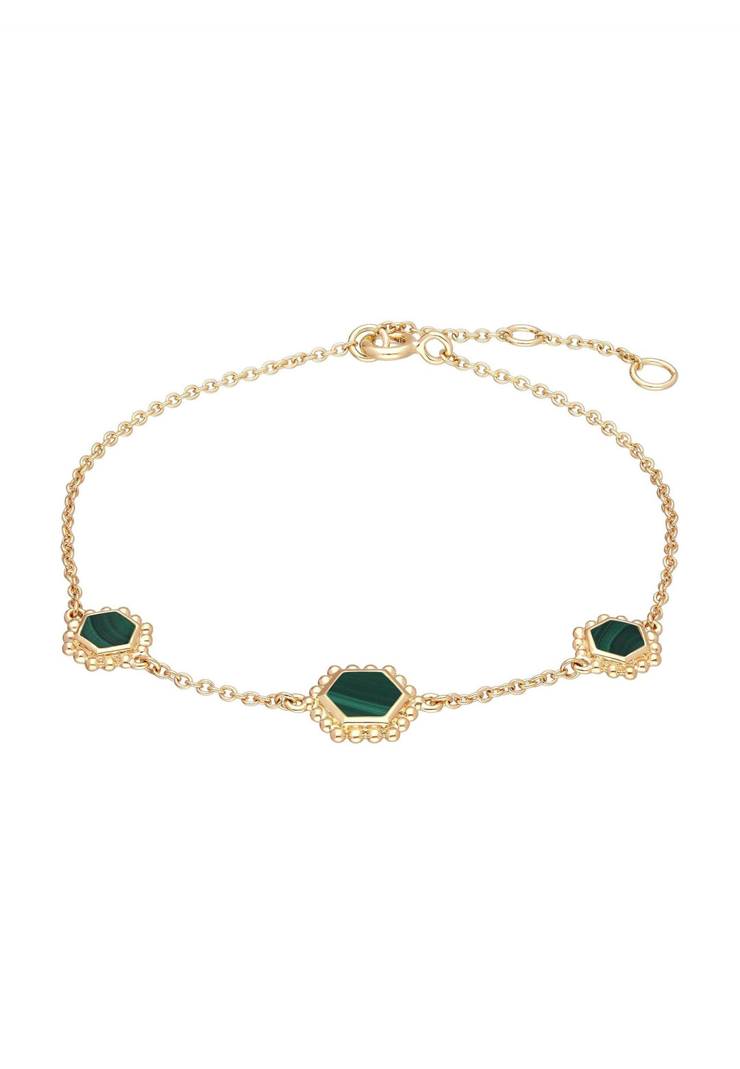 Malachit mit seinen leuchtend grünen linearen Krümmungen galt einst als Abwehrmittel gegen böse Mächte und schwarze Magie. Der Name leitet sich vom griechischen Wort „molochites“ (Malve) ab und ist nach einem grünen Kraut benannt, das sein natürliches und fruchtbares Aussehen widerspiegelt. Malachit mit seinem faserigen Glanz wird oft in wunderschöne Cabochons geschliffen, um seine dunklen, üppigen grünen Streifen und kugelförmigen Muster zur Schau zu stellen. Malachit kann säureempfindlich sein. Tragen Sie ihn daher vorsichtig, um seinen Glanz zu bewahren, und polieren Sie ihn sanft, um seinen Glanz zu verstärken.