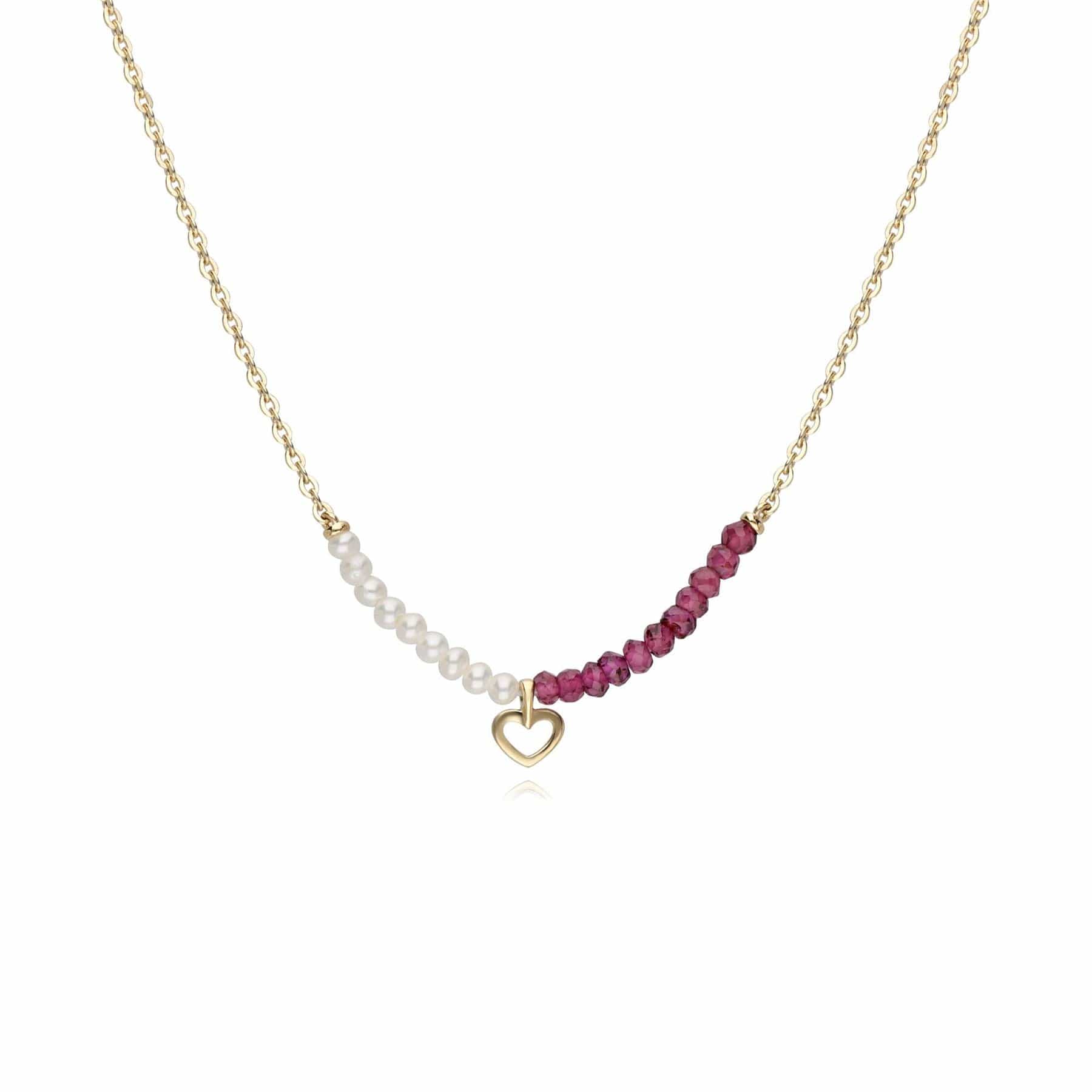 Herz-Halskette aus kultivierten Süßwasserperlen und Rhodoliten in 9 Karat Gelbgold